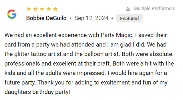 Since 1987, Party Magic Inc. has been providing professional on-location entertainment services throughout Northern New Jersey. We specialize in entertainment for children’s parties, school programs, camps, and corporate events.