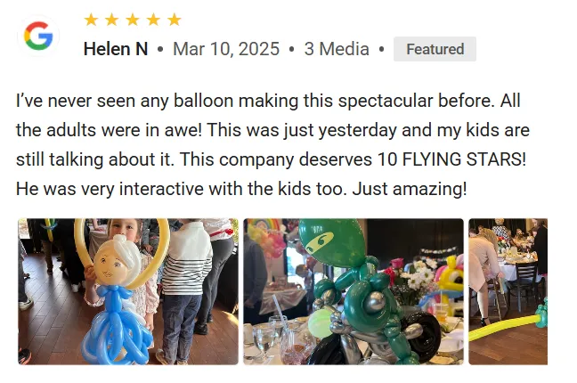 Experience the wonder of balloon artistry like never before! Our amazing balloon twisting brings vibrant creations to life, delighting guests of all ages. From whimsical animals to dazzling designs, our talented balloon artists turn every event—whether it’s a birthday bash, corporate gathering, or family celebration—into a colorful, unforgettable experience!